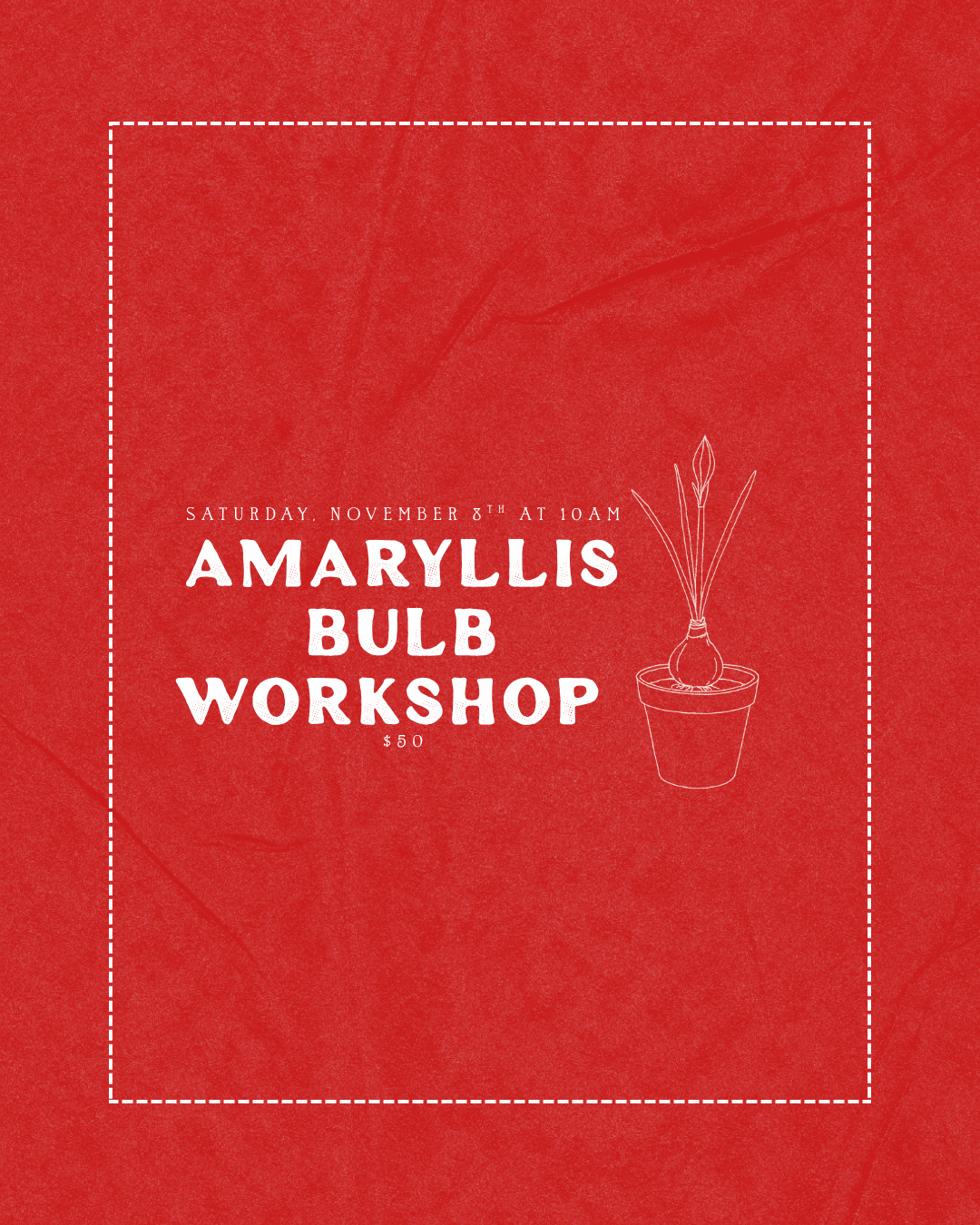 Dig into the beauty of bulb planting with this hands-on workshop. You’ll learn how to pot an amaryllis bulb in a simple terracotta container. We’ll also talk about spring-blooming bulbs and when to plant them, just before Thanksgiving, so they’re ready to burst with color come spring.